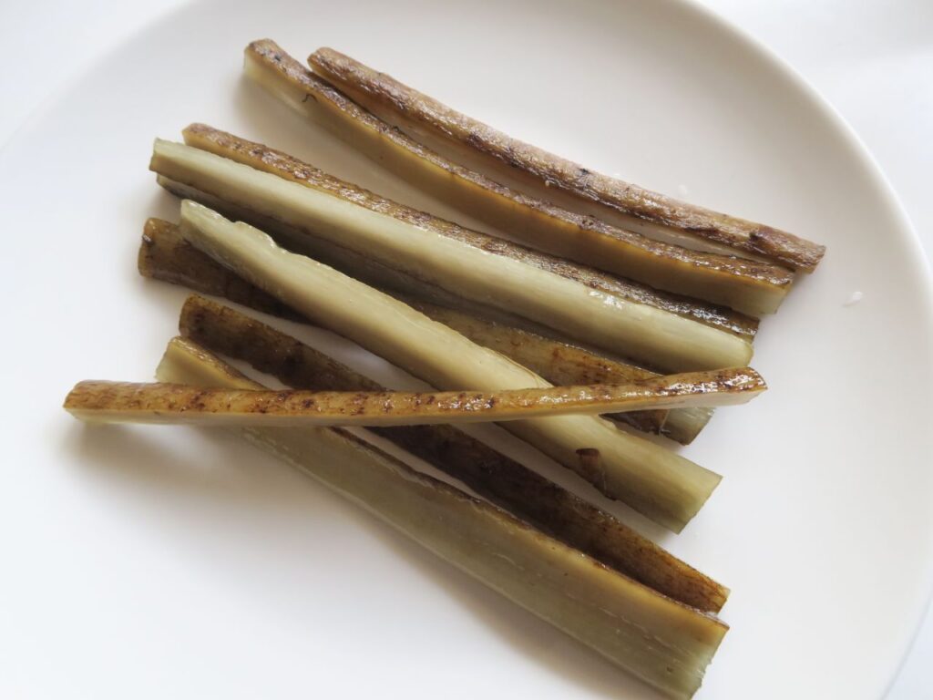 1. ごぼうは縦に5分割になるよう切り分ける。